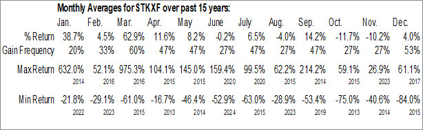 Strikepoint Gold Inc. (OTCMKT:STKXF) Seasonal Chart