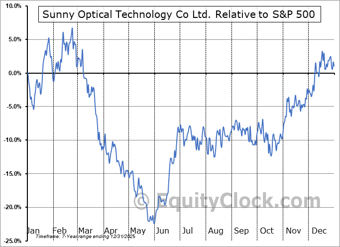Analysis of the Sunny Optical Technology Co Ltd. (OTCMKT:SOTGY) seasonal charts above shows that a Buy Date of September 25 and a Sell Date of December 17 has resulted in a geometric average return of 18.2% above the benchmark rate of the S&P 500 Total Return Index over the past 6 years. This seasonal timeframe has shown positive results compared to the benchmark in 6 of those periods. This is an excellent rate of success and the return strongly outperforms the relative buy-and-hold performance of the stock over the past 6 years by an average of 31.18% per year.