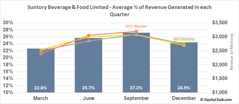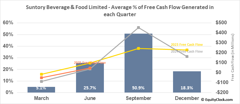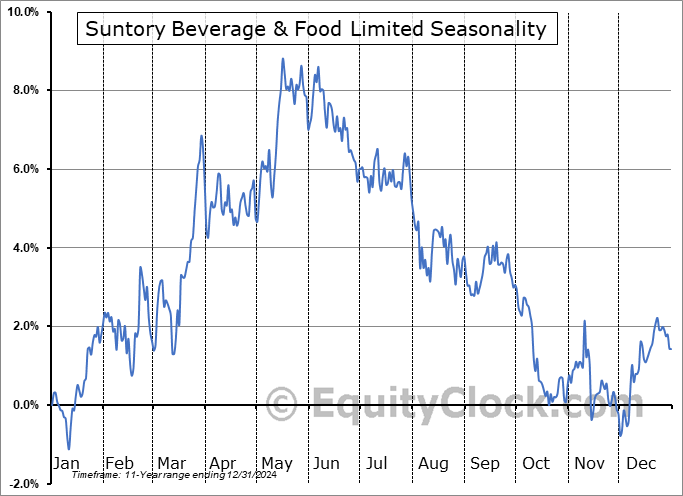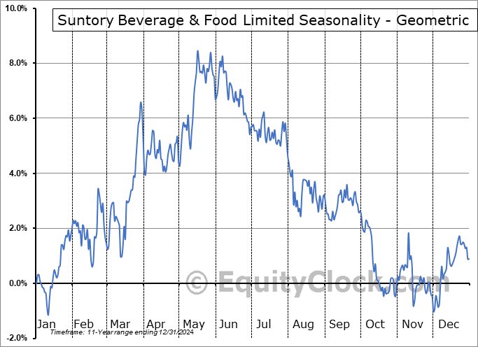 Suntory Beverage & Food Limited (OTCMKT:STBFY) Seasonal Chart
