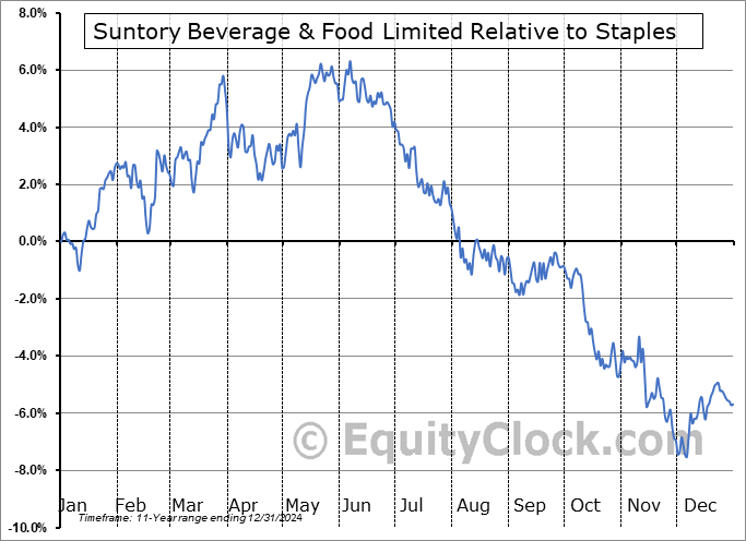 The seasonal timeframe is Inline with the period of seasonal strength for the Consumer Staples sector, which runs from April 25 to November 23. The seasonal chart for the broad sector is available via the following link: Consumer Staples Sector Seasonal Chart.