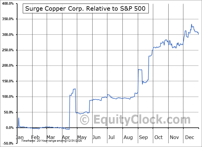 Analysis of the Surge Copper Corp. (OTCMKT:SRGXF) seasonal charts above shows that a Buy Date of July 17 and a Sell Date of October 15 has resulted in a geometric average return of 46.15% above the benchmark rate of the S&P 500 Total Return Index over the past 20 years. This seasonal timeframe has shown positive results compared to the benchmark in 15 of those periods. This is a good rate of success and the return strongly outperforms the relative buy-and-hold performance of the stock over the past 20 years by an average of 43.11% per year.