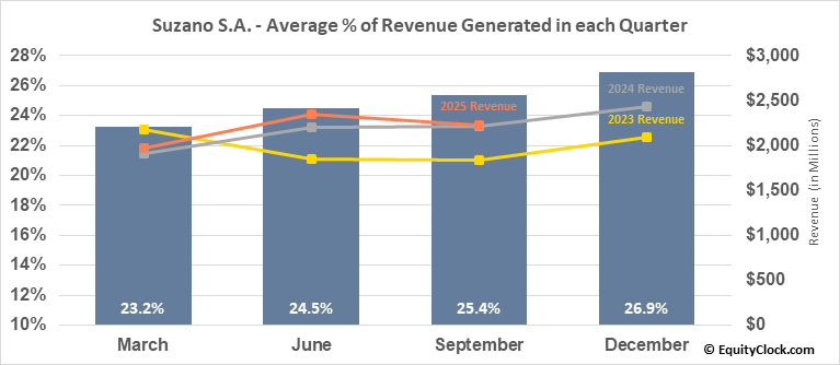 Suzano S.A. (NYSE:SUZ) Seasonal Chart