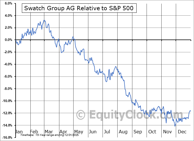 Analysis of the Swatch Group AG (OTCMKT:SWGAY) seasonal charts above shows that a Buy Date of November 10 and a Sell Date of February 21 has resulted in a geometric average return of 2.31% above the benchmark rate of the S&P 500 Total Return Index over the past 14 years. This seasonal timeframe has shown positive results compared to the benchmark in 9 of those periods. This is a fair rate of success and the return strongly outperforms the relative buy-and-hold performance of the stock over the past 14 years by an average of 18.48% per year.