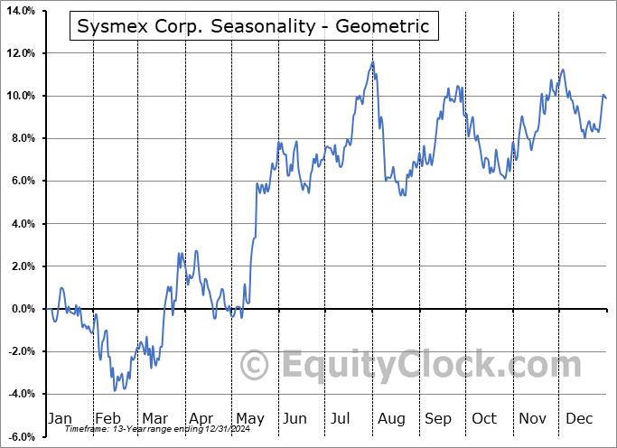 Sysmex Corp. (OTCMKT:SSMXY) Seasonal Chart