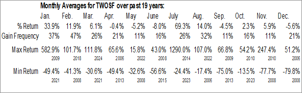 T2 Metals Corp. (OTCMKT:TWOSF) Seasonal Chart