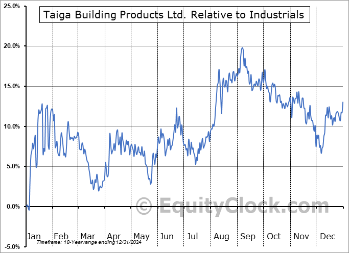 Taiga Building Products Ltd. (TSE:TBL.TO) Seasonal Chart