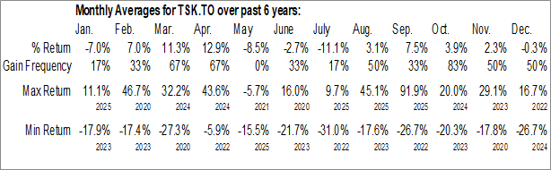To download TSK.TO seasonal chart data, please log in or Subscribe.