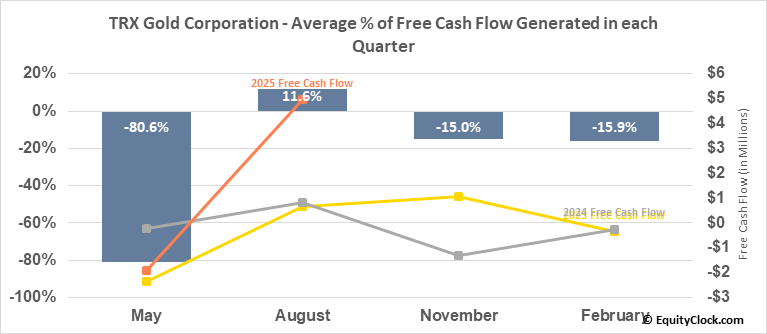 TRX Gold Corporation (AMEX:TRX) Seasonal Chart