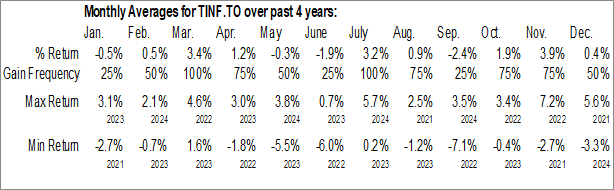 To download TINF.TO seasonal chart data, please log in or Subscribe.