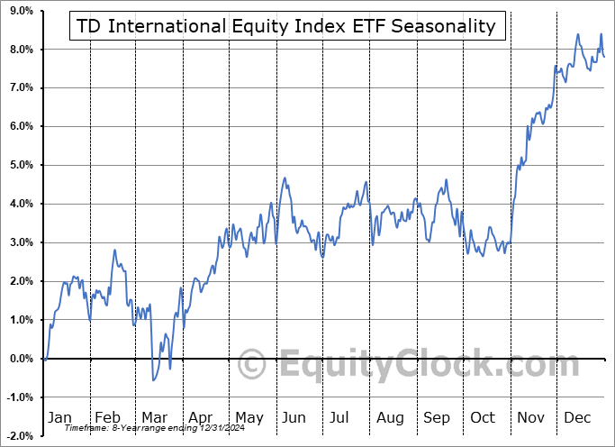 TD International Equity Index ETF (TSE:TPE.TO) Seasonal Chart
