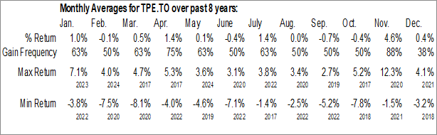 To download TPE.TO seasonal chart data, please log in or Subscribe.