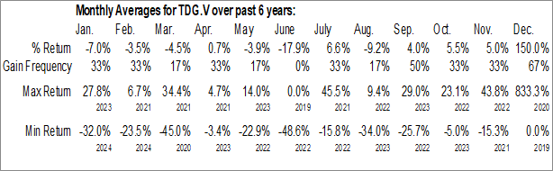 To download TDG.V seasonal chart data, please log in or Subscribe.