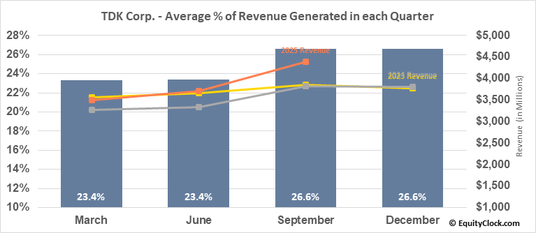 TDK Corp. (OTCMKT:TTDKY) Seasonal Chart
