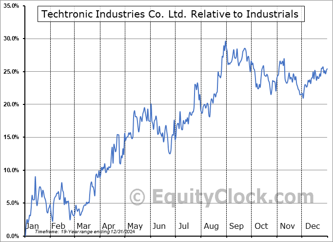 Analysis of the Techtronic Industries Co. Ltd. (OTCMKT:TTNDY) seasonal charts above shows that a Buy Date of October 24 and a Sell Date of January 31 has resulted in a geometric average return of 5.67% above the benchmark rate of the S&P 500 Total Return Index over the past 19 years. This seasonal timeframe has shown positive results compared to the benchmark in 16 of those periods. This is a very good rate of success and the return strongly outperforms the relative buy-and-hold performance of the stock over the past 19 years by an average of 5.32% per year.