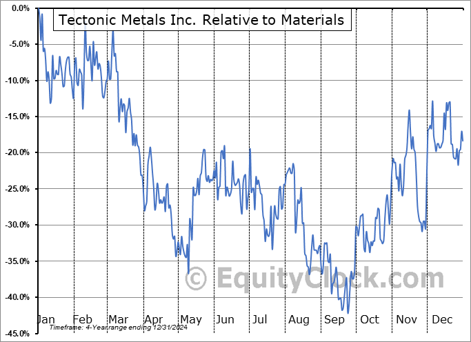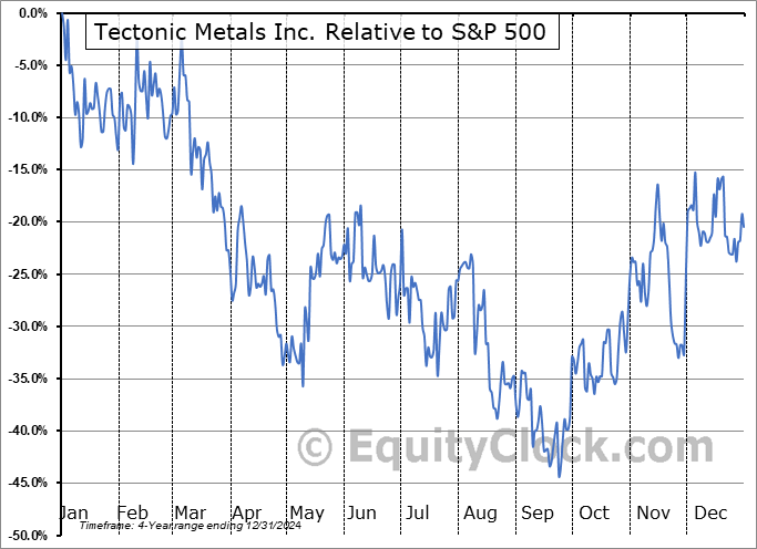 Analysis of the Tectonic Metals Inc. (OTCMKT:TETOF) seasonal charts above shows that a Buy Date of November 26 and a Sell Date of March 4 has resulted in a geometric average return of 10.09% above the benchmark rate of the S&P 500 Total Return Index over the past 4 years. This seasonal timeframe has shown positive results compared to the benchmark in 3 of those periods. This is a good rate of success and the return strongly outperforms the relative buy-and-hold performance of the stock over the past 4 years by an average of 42.95% per year.