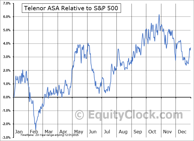 Analysis of the Telenor ASA (OTCMKT:TELNY) seasonal charts above shows that a Buy Date of February 11 and a Sell Date of May 12 has resulted in a geometric average return of 3.46% above the benchmark rate of the S&P 500 Total Return Index over the past 20 years. This seasonal timeframe has shown positive results compared to the benchmark in 15 of those periods. This is a good rate of success and the return strongly outperforms the relative buy-and-hold performance of the stock over the past 20 years by an average of 8.26% per year.