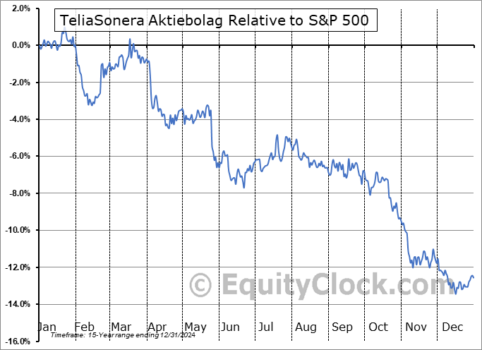 Analysis of the TeliaSonera Aktiebolag (OTCMKT:TLSNY) seasonal charts above shows that a Buy Date of June 21 and a Sell Date of September 21 has resulted in a geometric average return of 0.63% above the benchmark rate of the S&P 500 Total Return Index over the past 15 years. This seasonal timeframe has shown positive results compared to the benchmark in 9 of those periods. This is a fair rate of success and the return strongly outperforms the relative buy-and-hold performance of the stock over the past 15 years by an average of 16.17% per year.