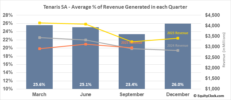 Tenaris SA (NYSE:TS) Seasonal Chart
