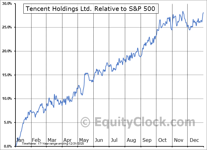 Analysis of the Tencent Holdings Ltd. (OTCMKT:TCEHY) seasonal charts above shows that a Buy Date of December 4 and a Sell Date of March 1 has resulted in a geometric average return of 9.19% above the benchmark rate of the S&P 500 Total Return Index over the past 16 years. This seasonal timeframe has shown positive results compared to the benchmark in 15 of those periods. This is an excellent rate of success, but the return underperforms the relative buy-and-hold performance of the stock over the past 16 years by an average of 1.68% per year.