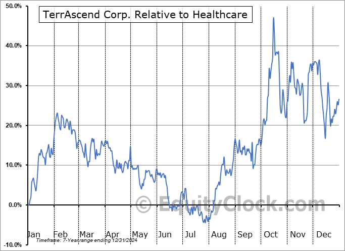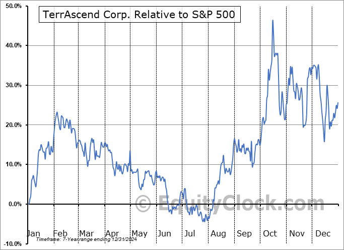 Analysis of the TerrAscend Corp. (OTCMKT:TSNDF) seasonal charts above shows that a Buy Date of December 28 and a Sell Date of April 6 has resulted in a geometric average return of 16.09% above the benchmark rate of the S&P 500 Total Return Index over the past 7 years. This seasonal timeframe has shown positive results compared to the benchmark in 7 of those periods. This is an excellent rate of success and the return strongly outperforms the relative buy-and-hold performance of the stock over the past 7 years by an average of 44.37% per year.