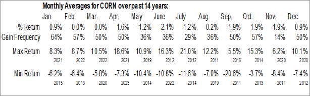 Teucrium Corn Fund (NYSE:CORN) Seasonal Chart