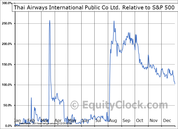 Analysis of the Thai Airways International Public Co Ltd. (OTCMKT:TAWNF) seasonal charts above shows that a Buy Date of January 1 and a Sell Date of April 21 has resulted in a geometric average return of 23.47% above the benchmark rate of the S&P 500 Total Return Index over the past 20 years. This seasonal timeframe has shown positive results compared to the benchmark in 13 of those periods. This is a good rate of success and the return strongly outperforms the relative buy-and-hold performance of the stock over the past 20 years by an average of 38.71% per year.