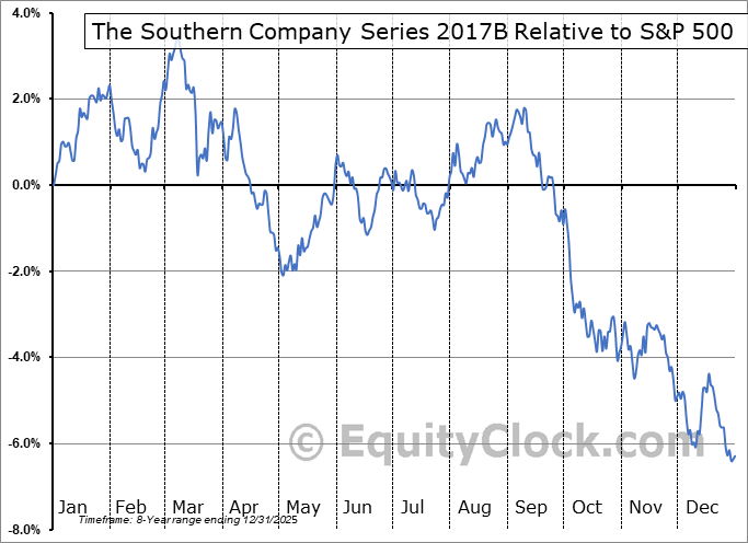 Analysis of the The Southern Company Series 2017B (NYSE:SOJC) seasonal charts above shows that a Buy Date of October 17 and a Sell Date of March 13 has resulted in a geometric average return of 2.61% above the benchmark rate of the S&P 500 Total Return Index over the past 7 years. This seasonal timeframe has shown positive results compared to the benchmark in 5 of those periods. This is a good rate of success and the return strongly outperforms the relative buy-and-hold performance of the stock over the past 7 years by an average of 11.66% per year.