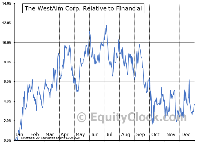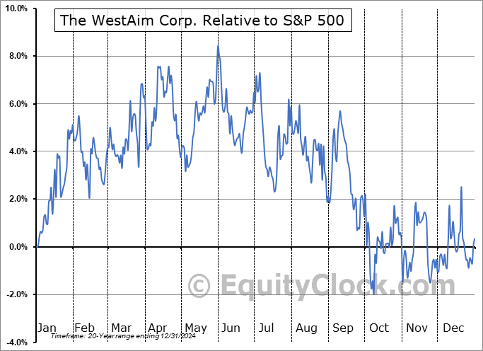 Analysis of the The WestAim Corp. (TSXV:WED.V) seasonal charts above shows that a Buy Date of December 16 and a Sell Date of April 21 has resulted in a geometric average return of 4.21% above the benchmark rate of the S&P 500 Total Return Index over the past 20 years. This seasonal timeframe has shown positive results compared to the benchmark in 16 of those periods. This is a very good rate of success and the return strongly outperforms the relative buy-and-hold performance of the stock over the past 20 years by an average of 13.68% per year.