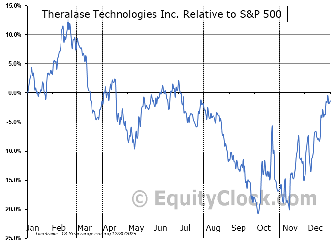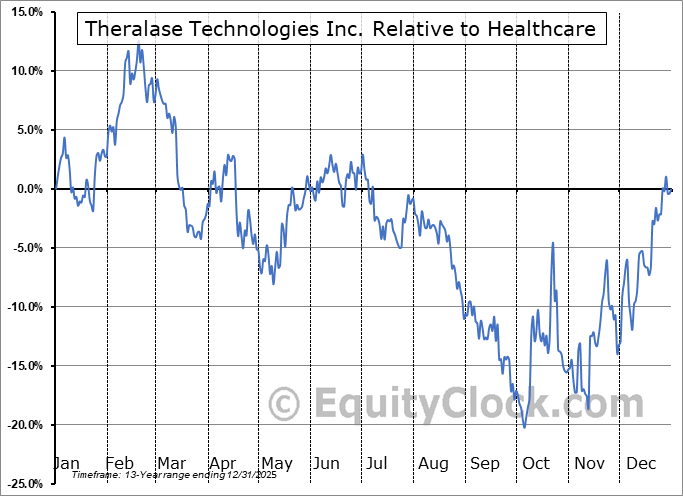 Analysis of the Theralase Technologies Inc. (OTCMKT:TLTFF) seasonal charts above shows that a Buy Date of November 12 and a Sell Date of February 17 has resulted in a geometric average return of 27.42% above the benchmark rate of the S&P 500 Total Return Index over the past 13 years. This seasonal timeframe has shown positive results compared to the benchmark in 12 of those periods. This is an excellent rate of success and the return strongly outperforms the relative buy-and-hold performance of the stock over the past 13 years by an average of 42.83% per year.