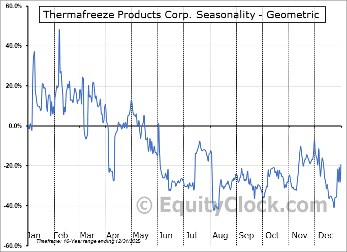 Analysis of the Thermafreeze Products Corp. (OTCMKT:TZPC) seasonal charts above shows that a Buy Date of December 23 and a Sell Date of May 15 has resulted in a geometric average return of 58.25% above the benchmark rate of the S&P 500 Total Return Index over the past 15 years. This seasonal timeframe has shown positive results compared to the benchmark in 11 of those periods. This is a good rate of success and the return strongly outperforms the relative buy-and-hold performance of the stock over the past 15 years by an average of 84.04% per year.