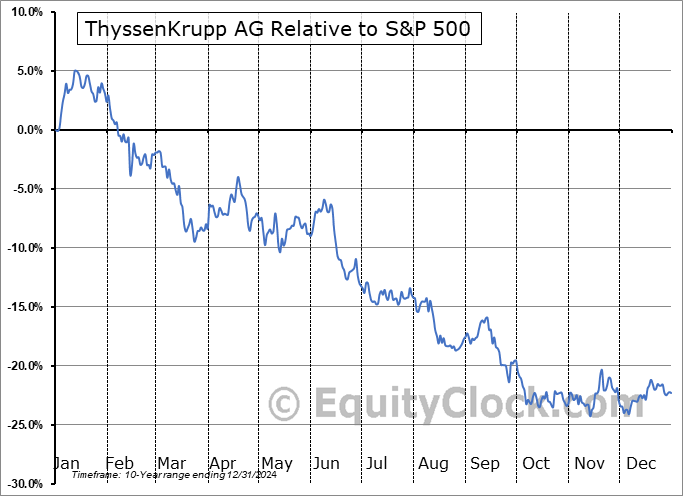 Analysis of the ThyssenKrupp AG (OTCMKT:TKAMY) seasonal charts above shows that a Buy Date of March 18 and a Sell Date of June 8 has resulted in a geometric average return of 5.24% above the benchmark rate of the S&P 500 Total Return Index over the past 9 years. This seasonal timeframe has shown positive results compared to the benchmark in 7 of those periods. This is a good rate of success and the return strongly outperforms the relative buy-and-hold performance of the stock over the past 9 years by an average of 33.88% per year.