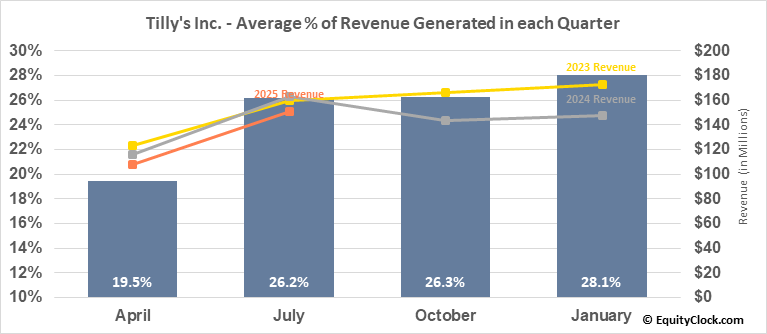 Tilly’s Inc. (NYSE:TLYS) Seasonal Chart