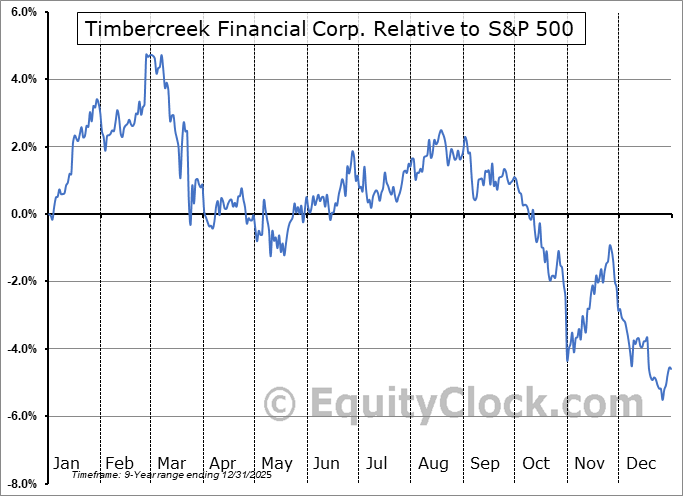 Analysis of the Timbercreek Financial Corp. (TSE:TF.TO) seasonal charts above shows that a Buy Date of November 11 and a Sell Date of February 27 has resulted in a geometric average return of 4.05% above the benchmark rate of the S&P 500 Total Return Index over the past 8 years. This seasonal timeframe has shown positive results compared to the benchmark in 7 of those periods. This is a very good rate of success and the return strongly outperforms the relative buy-and-hold performance of the stock over the past 8 years by an average of 12.46% per year.