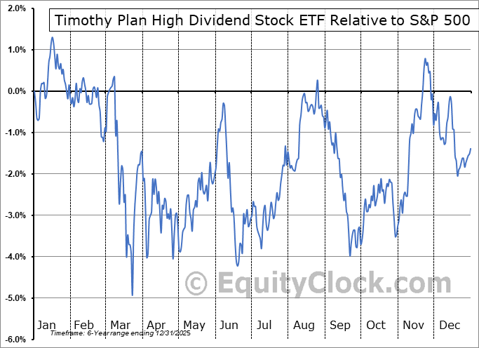 Analysis of the Timothy Plan High Dividend Stock ETF (AMEX:TPHD) seasonal charts above shows that a Buy Date of July 6 and a Sell Date of November 2 has resulted in a geometric average return of 1.91% above the benchmark rate of the S&P 500 Total Return Index over the past 5 years. This seasonal timeframe has shown positive results compared to the benchmark in 4 of those periods. This is a very good rate of success and the return strongly outperforms the relative buy-and-hold performance of the stock over the past 5 years by an average of 6.79% per year.