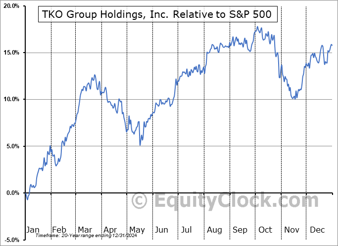 Analysis of the TKO Group Holdings, Inc. (NYSE:TKO) seasonal charts above shows that a Buy Date of December 18 and a Sell Date of March 31 has resulted in a geometric average return of 8.39% above the benchmark rate of the S&P 500 Total Return Index over the past 20 years. This seasonal timeframe has shown positive results compared to the benchmark in 17 of those periods. This is a very good rate of success and the return outperforms the relative buy-and-hold performance of the stock over the past 20 years by an average of 1.6% per year.