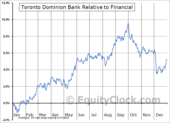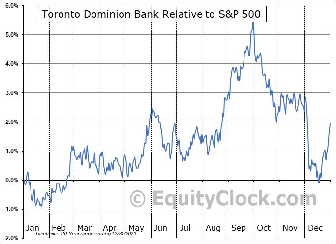 Analysis of the Toronto Dominion Bank (NYSE:TD) seasonal charts above shows that a Buy Date of July 9 and a Sell Date of September 27 has resulted in a geometric average return of 2.97% above the benchmark rate of the S&P 500 Total Return Index over the past 20 years. This seasonal timeframe has shown positive results compared to the benchmark in 15 of those periods. This is a good rate of success and the return strongly outperforms the relative buy-and-hold performance of the stock over the past 20 years by an average of 4.35% per year.