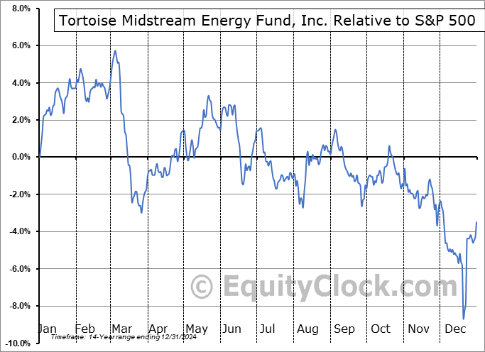 Analysis of the Tortoise Midstream Energy Fund, Inc. (NYSE:NTG) seasonal charts above shows that a Buy Date of March 18 and a Sell Date of August 10 has resulted in a geometric average return of 6.52% above the benchmark rate of the S&P 500 Total Return Index over the past 14 years. This seasonal timeframe has shown positive results compared to the benchmark in 11 of those periods. This is a good rate of success and the return strongly outperforms the relative buy-and-hold performance of the stock over the past 14 years by an average of 20.92% per year.
