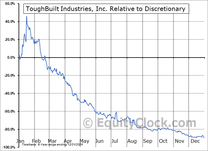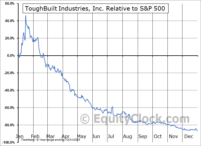 Analysis of the ToughBuilt Industries, Inc. (NASD:TBLT) seasonal charts above shows that a Buy Date of October 23 and a Sell Date of January 12 has resulted in a geometric average return of 2.7% above the benchmark rate of the S&P 500 Total Return Index over the past 4 years. This seasonal timeframe has shown positive results compared to the benchmark in 3 of those periods. This is a good rate of success and the return strongly outperforms the relative buy-and-hold performance of the stock over the past 4 years by an average of 102.7% per year.