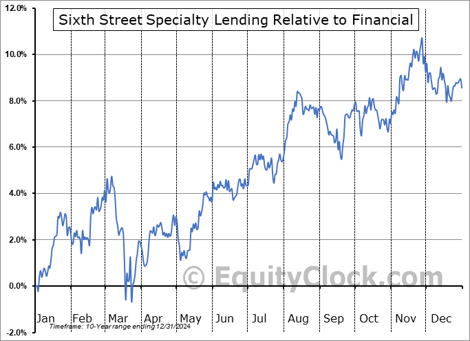 Analysis of the Sixth Street Specialty Lending (NYSE:TSLX) seasonal charts above shows that a Buy Date of July 23 and a Sell Date of November 26 has resulted in a geometric average return of 4.18% above the benchmark rate of the S&P 500 Total Return Index over the past 10 years. This seasonal timeframe has shown positive results compared to the benchmark in 8 of those periods. This is a very good rate of success and the return strongly outperforms the relative buy-and-hold performance of the stock over the past 10 years by an average of 3.35% per year.