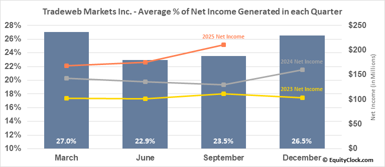 A word of caution: Only 5 years of data is available for shares of TW, perhaps insufficient to create a seasonal profile that accurately gauges the seasonal tendencies influencing the investment. Ideally, while 20 years is preferred, at least 10 years of data is required to perform a seasonal analysis that is considered to be reliable for future seasonal periods.