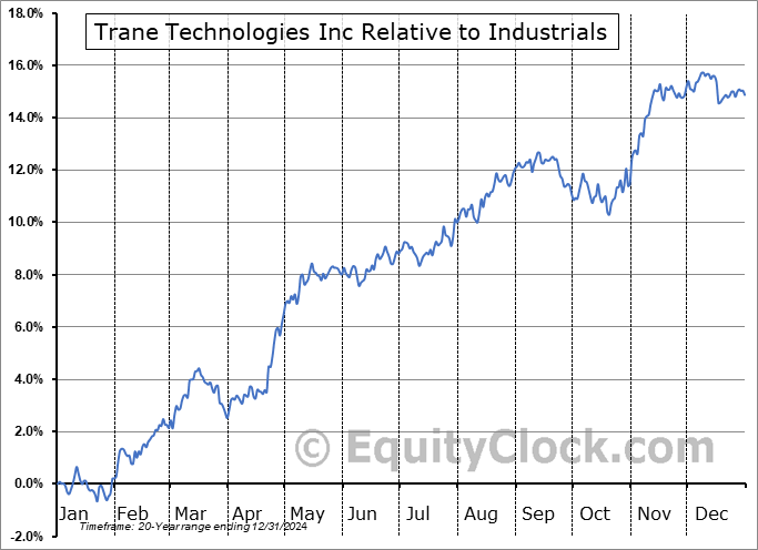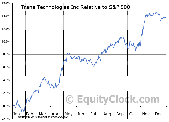 Analysis of the Trane Technologies Inc (NYSE:TT) seasonal charts above shows that a Buy Date of October 27 and a Sell Date of March 16 has resulted in a geometric average return of 7.38% above the benchmark rate of the S&P 500 Total Return Index over the past 20 years. This seasonal timeframe has shown positive results compared to the benchmark in 17 of those periods. This is a very good rate of success and the return outperforms the relative buy-and-hold performance of the stock over the past 20 years by an average of 1.62% per year.