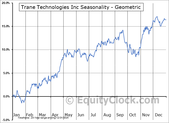 Trane Technologies Inc (NYSE:TT) Seasonal Chart