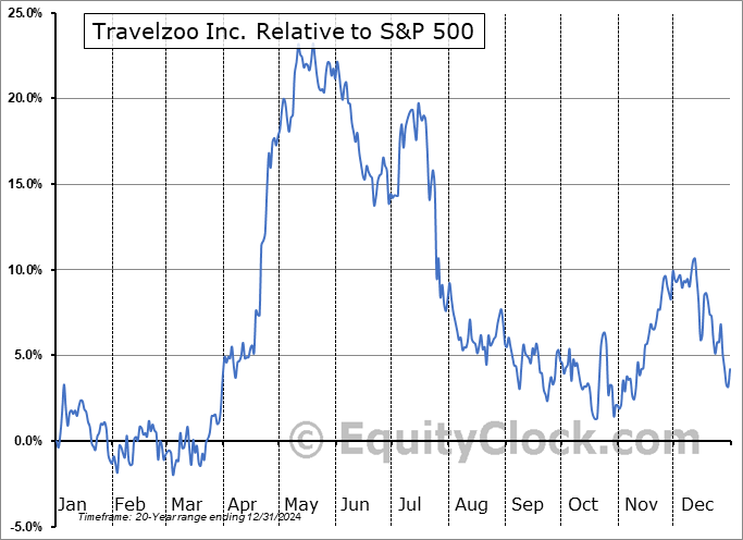 Analysis of the Travelzoo Inc. (NASD:TZOO) seasonal charts above shows that a Buy Date of March 18 and a Sell Date of June 8 has resulted in a geometric average return of 15.18% above the benchmark rate of the S&P 500 Total Return Index over the past 20 years. This seasonal timeframe has shown positive results compared to the benchmark in 14 of those periods. This is a good rate of success and the return strongly outperforms the relative buy-and-hold performance of the stock over the past 20 years by an average of 31.19% per year.
