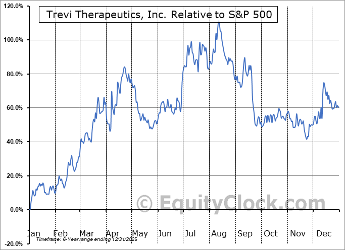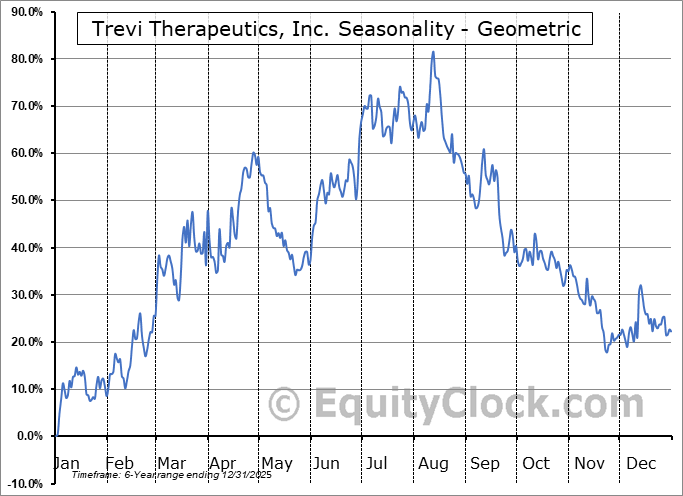 Analysis of the Trevi Therapeutics, Inc. (NASD:TRVI) seasonal charts above shows that a Buy Date of March 14 and a Sell Date of July 5 has resulted in a geometric average return of 54.97% above the benchmark rate of the S&P 500 Total Return Index over the past 4 years. This seasonal timeframe has shown positive results compared to the benchmark in 3 of those periods. This is a good rate of success and the return strongly outperforms the relative buy-and-hold performance of the stock over the past 4 years by an average of 85.77% per year.