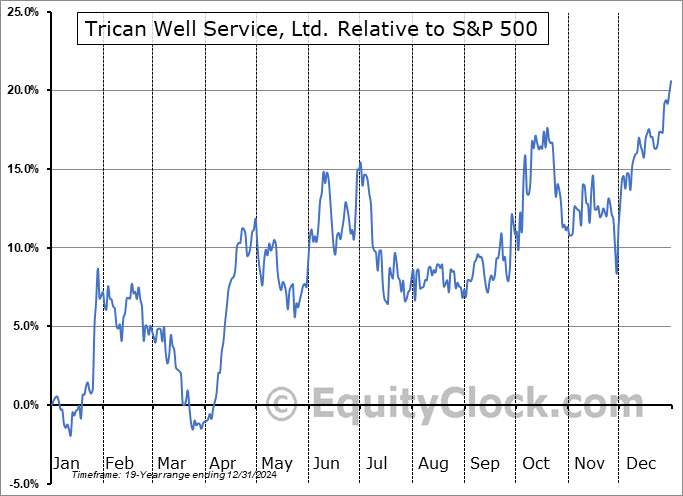 Analysis of the Trican Well Service, Ltd. (OTCMKT:TOLWF) seasonal charts above shows that a Buy Date of March 23 and a Sell Date of June 11 has resulted in a geometric average return of 9.11% above the benchmark rate of the S&P 500 Total Return Index over the past 19 years. This seasonal timeframe has shown positive results compared to the benchmark in 15 of those periods. This is a good rate of success and the return strongly outperforms the relative buy-and-hold performance of the stock over the past 19 years by an average of 29.29% per year.