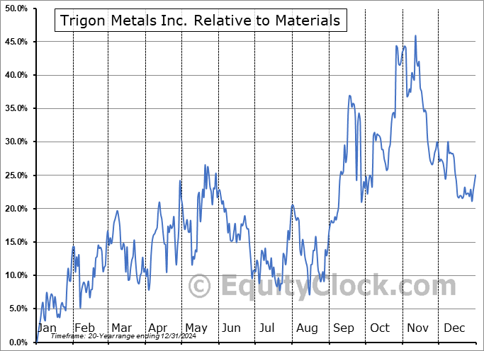 The seasonal timeframe is Inline with the period of seasonal strength for the Materials sector, which runs from November 20 to May 5. The seasonal chart for the broad sector is available via the following link: Materials Sector Seasonal Chart.