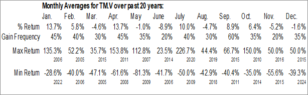 Trigon Metals Inc. (TSXV:TM.V) Seasonal Chart