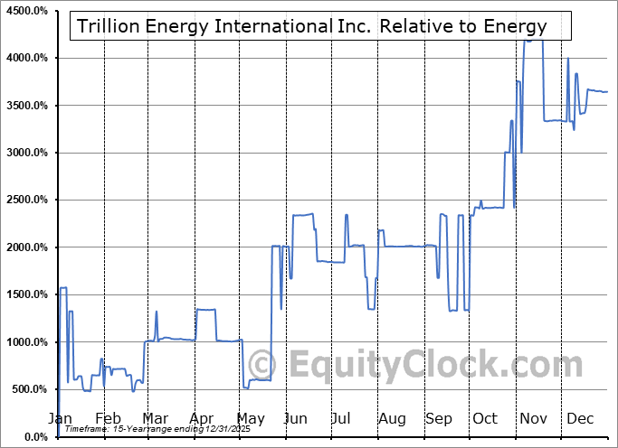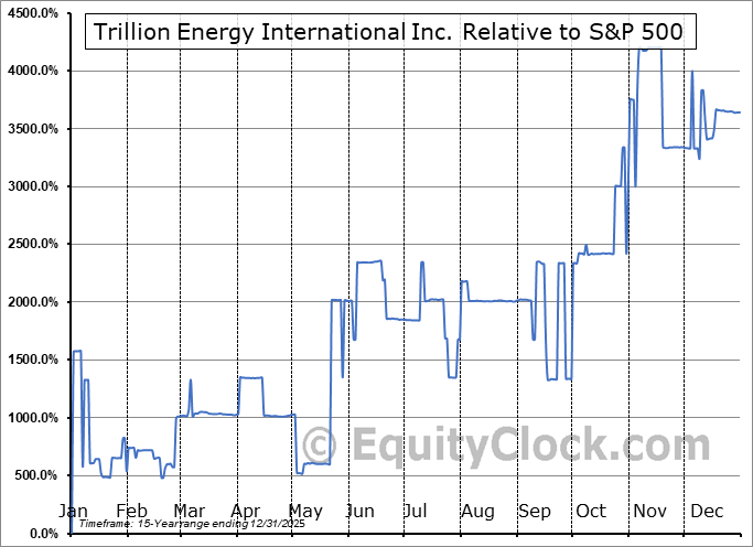 Analysis of the Trillion Energy International Inc. (OTCMKT:TRLEF) seasonal charts above shows that a Buy Date of February 23 and a Sell Date of June 23 has resulted in a geometric average return of 31.9% above the benchmark rate of the S&P 500 Total Return Index over the past 14 years. This seasonal timeframe has shown positive results compared to the benchmark in 12 of those periods. This is a very good rate of success and the return strongly outperforms the relative buy-and-hold performance of the stock over the past 14 years by an average of 60.25% per year.
