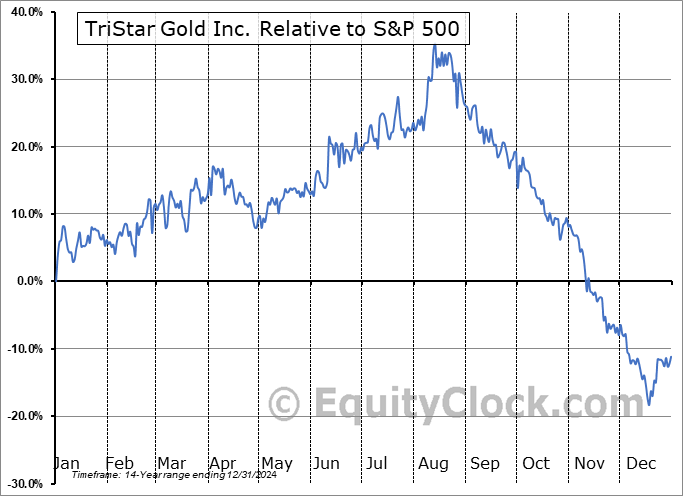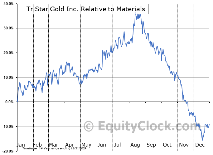 Analysis of the TriStar Gold Inc. (TSXV:TSG.V) seasonal charts above shows that a Buy Date of December 20 and a Sell Date of April 6 has resulted in a geometric average return of 19.49% above the benchmark rate of the S&P 500 Total Return Index over the past 14 years. This seasonal timeframe has shown positive results compared to the benchmark in 13 of those periods. This is an excellent rate of success and the return strongly outperforms the relative buy-and-hold performance of the stock over the past 14 years by an average of 39.95% per year.