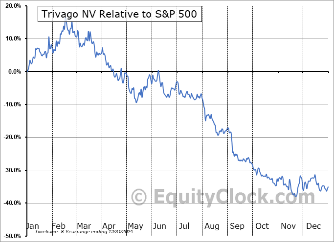 Analysis of the Trivago NV (NASD:TRVG) seasonal charts above shows that a Buy Date of December 29 and a Sell Date of March 31 has resulted in a geometric average return of 2.55% above the benchmark rate of the S&P 500 Total Return Index over the past 7 years. This seasonal timeframe has shown positive results compared to the benchmark in 6 of those periods. This is a very good rate of success and the return strongly outperforms the relative buy-and-hold performance of the stock over the past 7 years by an average of 43.31% per year.